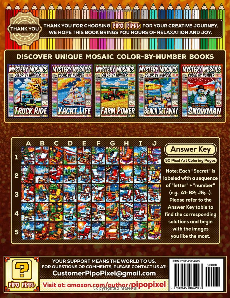 - Immerse yourself in Rocking Chair Christmas in Heaven Mystery Mosaic Color by Number, featuring 50 unique pixel art designs showcasing festive rocking chair scenes. Each illustration offers a cozy, heartwarming escape for coloring enthusiasts.